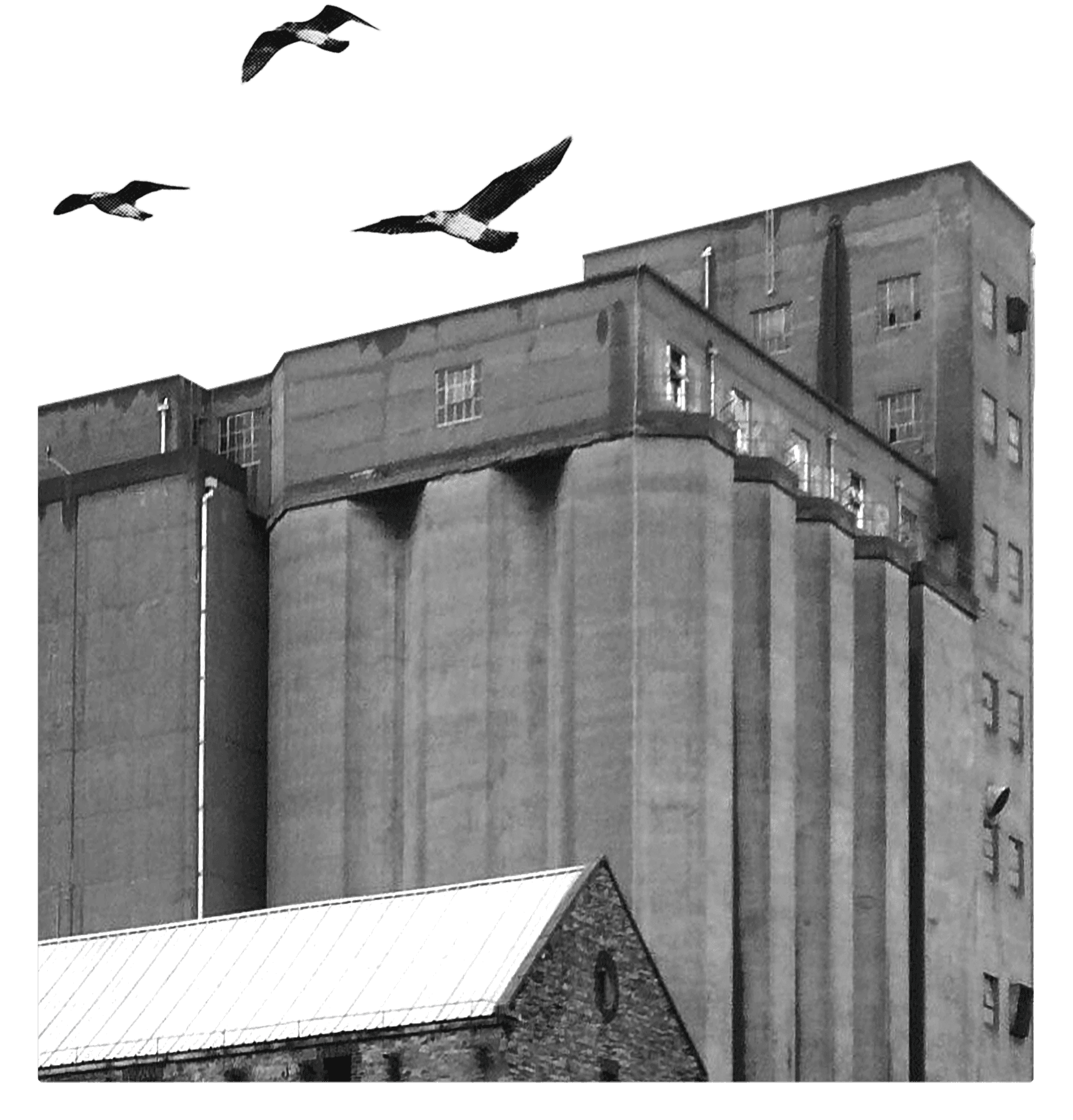 The landmark concrete grain silos are built.